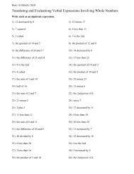 Translating Expressions Pdf Algebra 1 Worksheet 1 5 Translating Expressions Name Date Period Write Each Phrase As An Algebraic Expression 1 12 More Course Hero